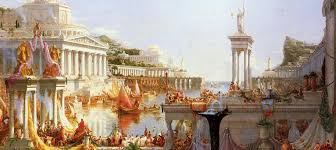In this there is a building with large stone looking pillars surrounding the entire thing. It looks like there is a ton of art on the building that may mean something to them. It also looks like a place they would pray and worship their gods at.